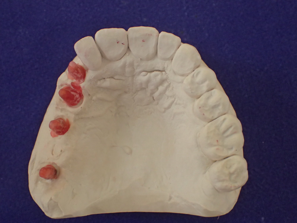 Nunmehr ist es durch die Anwendung 30 Grad gewinkelter Implantataufbauten gelungen das Peroblem zu lösen.