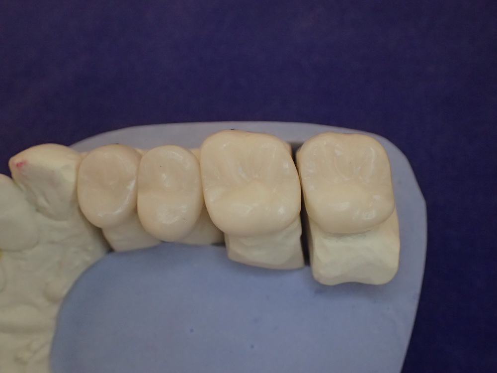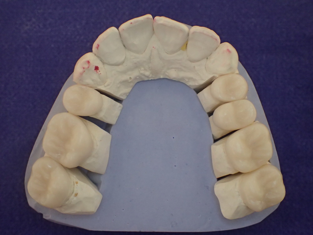 Die Zementierung erfolgt adhäsiv, nach Entfernung der sehr fest sitzenden Übergangsprovisorien und ohne Probleme.