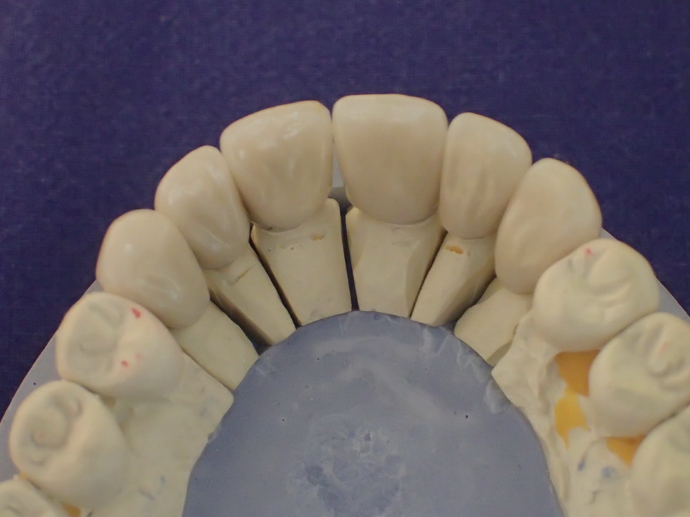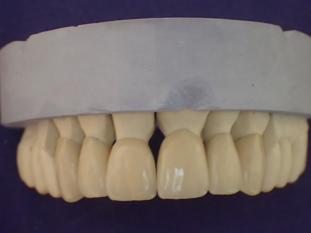 Die letzten sechs Oberkieferfrontzahnkronen werden eingesetzt.