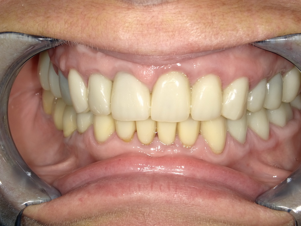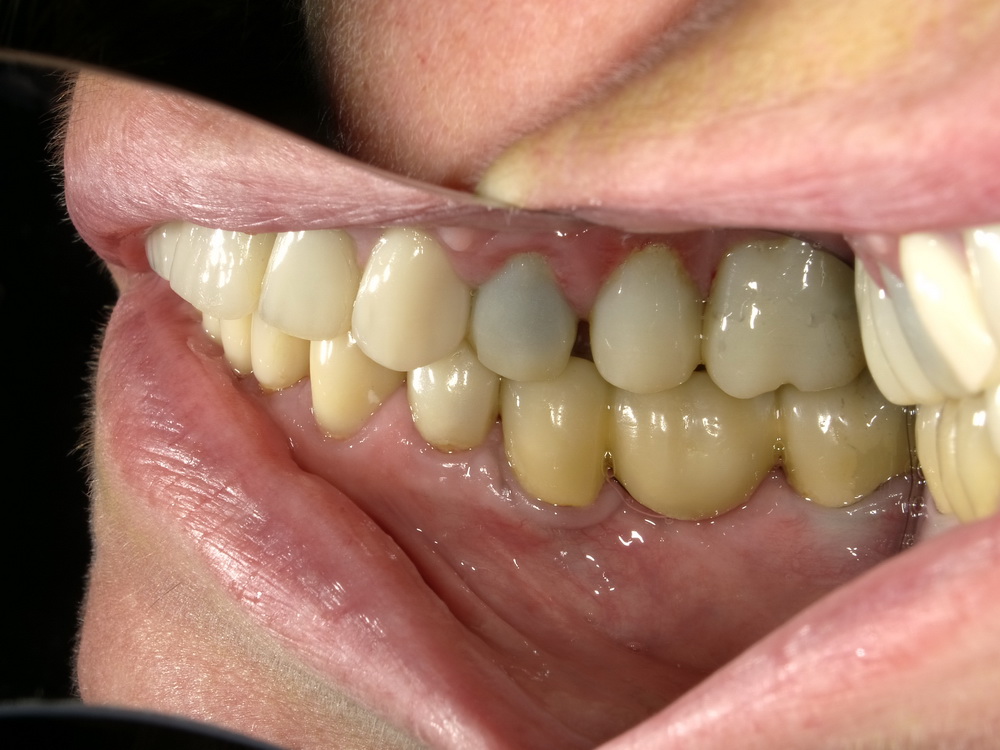 Nach mehreren Monaten Erprobungszeit der funktionstherapeutisch eingestellten Bisslage beginn nunmehr die Umsetzung der Versorgung mit Laborgfertigten Dauerprovisorien in eine Versorgung mit definitiven zahntechnischen Kronen.