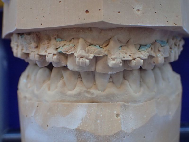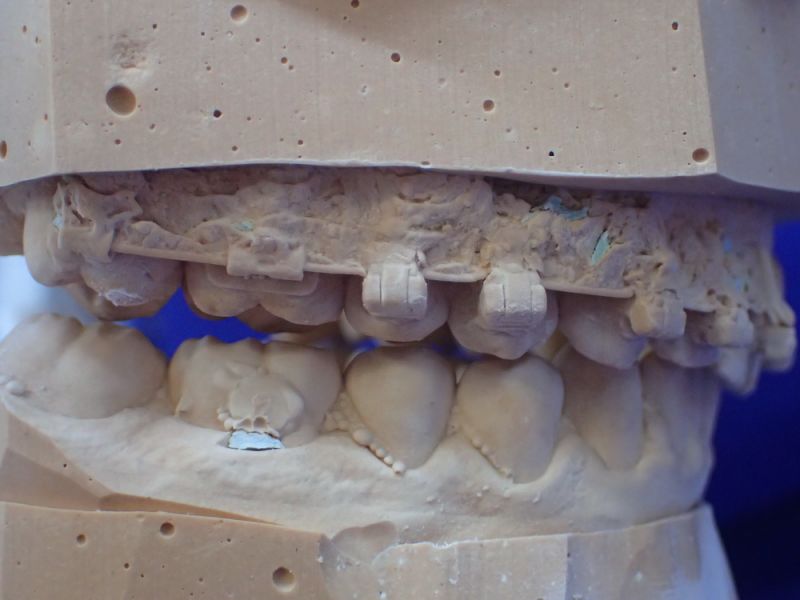 Daraufhin hat der Patient eine Kieferorthopädin konsultiert, die sich nach eigener Einschäötzung auf das Thema CMD spezialisiert hat. Ohne Vordiagnostik hat daraufhin eine Kieferorthopädische Erwachsenenbehandlung begonnen, die mit einer Bebänderung des Oberkiefers begann und nach kurzer Zeit zu geradezu explosionsartig verstärkten Bescherden des Patienten führte. Darauf angesprochen erklärte die konsultierte Kieferorthopädin, nach inzwischen 6000,-€ Behandlungskosten sie wisse nicht mehr weiter und könne dem Patienten nicht helfen.