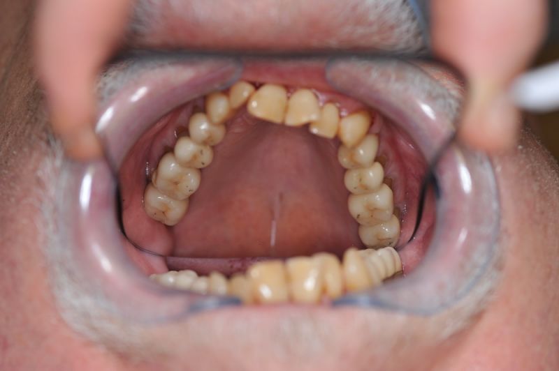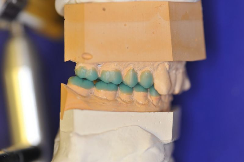 Der Patient erhält die beiden letzten Kronen zur Einstellung der dynamischen Okklusion.