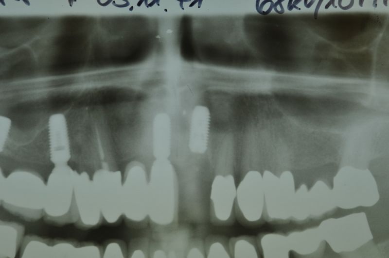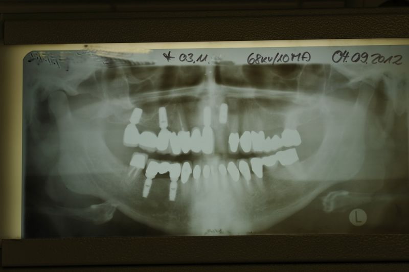 Was man an diesem Fall gut zu erkennen vermag, dass Patienten, die für sich irgendwann entschieden haben, nicht mit einem herausnehmbaren Zahnersatz ihren Lebensabend verbringen wollen auch nach und nach auf eine Implantatpfeilerstützzahl kommen, die genügend Substanz für die Lebensphase bieten, in der körpereigene Stützsubstanz, in Form von Zähnen zunehmend verloren geht.