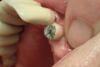 Hier sieht man die Trennung der Krone, um überhaupt die Möglichkeit zu haben an den Implantataufbau und die darin verborgene Schraube zu gelangen.