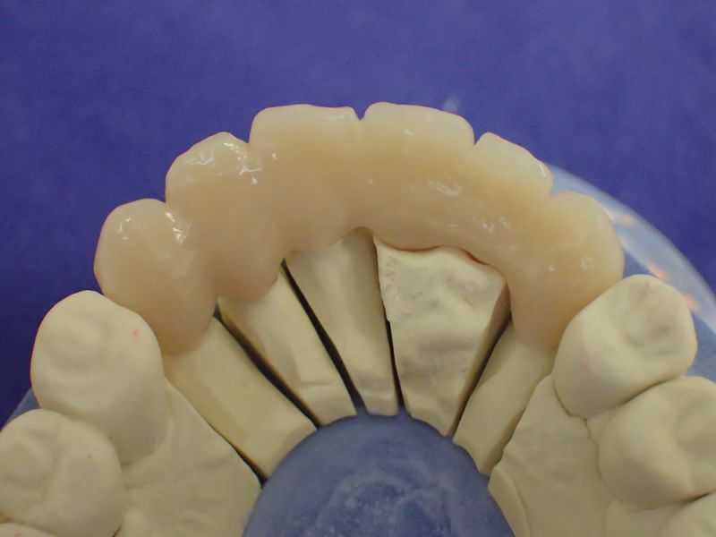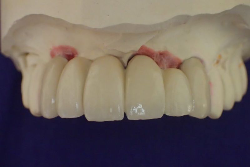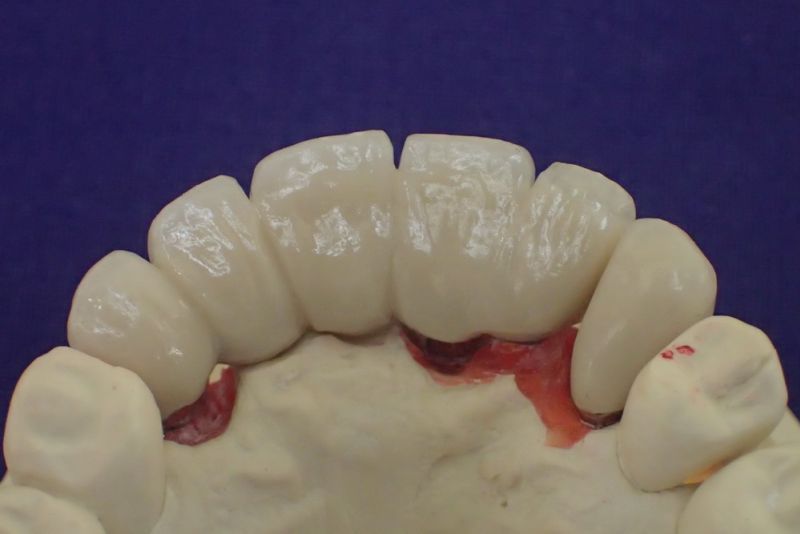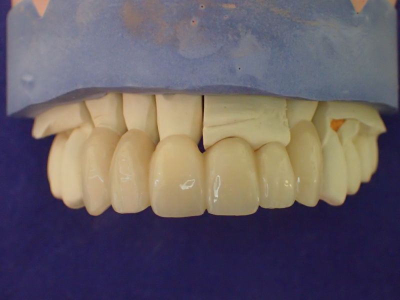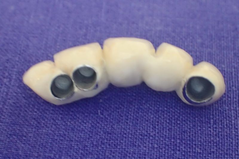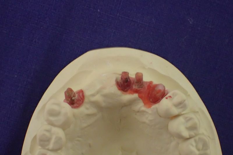 Nun aber schien alles zur endgültigen Eingliederung der implantatgestützten Oberkieferfrontzahnbrückenversorgung bereit.