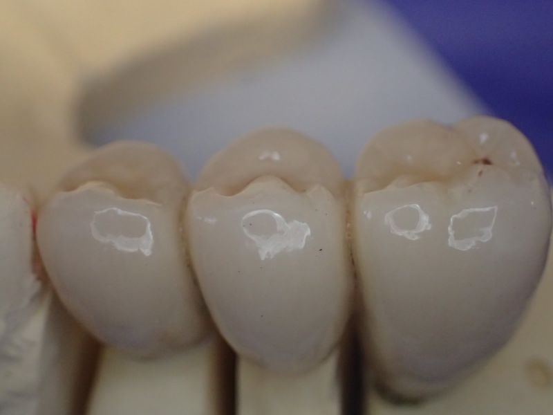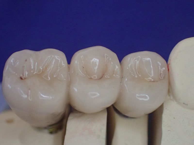 Zur Wiederherstellung der rechten Stützzone wird eine implantatgestützte Brücke eingegliedert und die Patientin hat nach längerer Zeit wirder das Gefühl der eigenen Zähne im Mund.