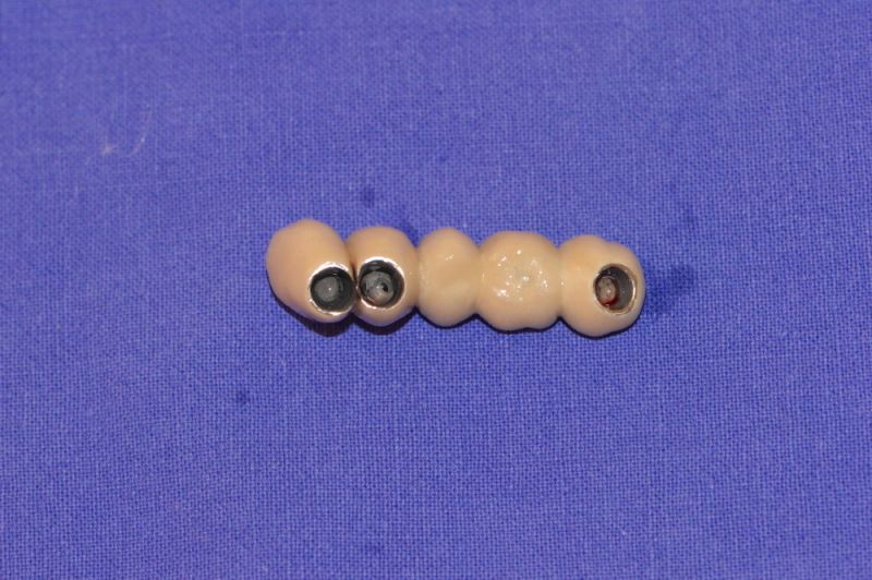 Wie bei all diesen Arbeiten wird geprüft, ob der Patient mit einer Interdentalraumbürste zwischen den Kronen, Zähnen und Implantaten eine gute Mundhygiene durchführen kann.
