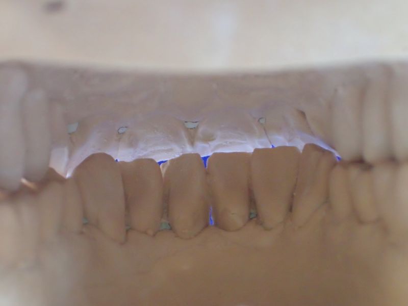 Die Patientin erhält einen adjustierten Aufbissbehelf zur kausalen Diagnostikabklärung.