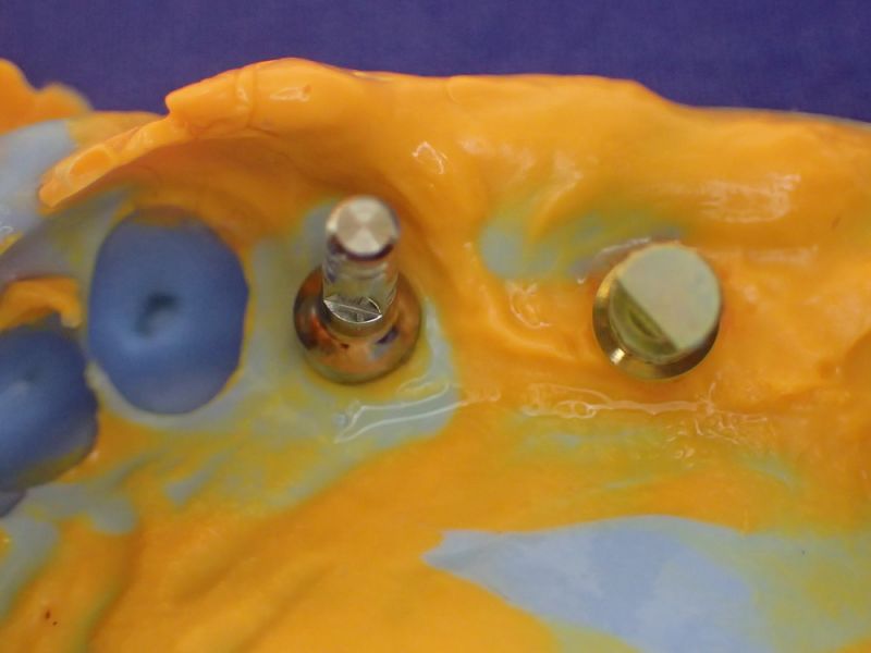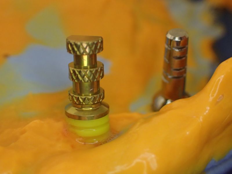 Nach erfolgreicher Osseointegration erfolgt heute die Versorgung der beiden Implantate mit einer Brückenkonstruktion.