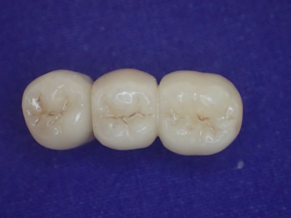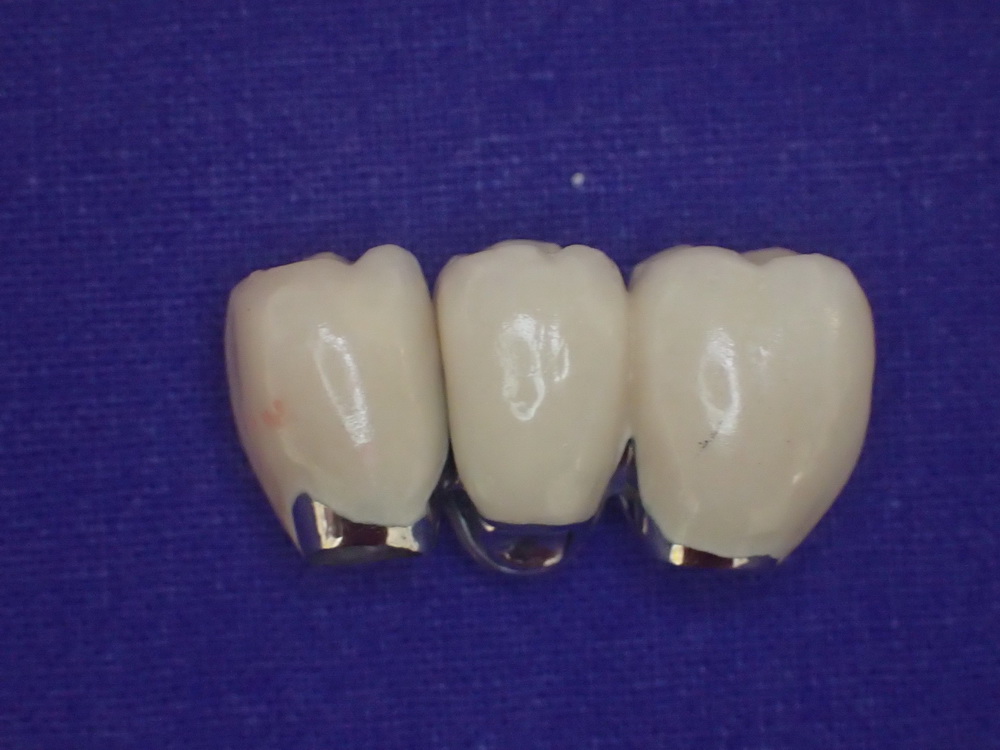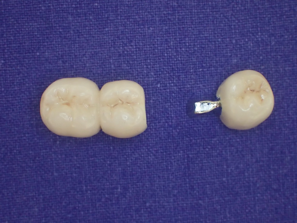 Es wird definitiv eingegliedert: Eine neue Geschiebebrückenkonstruktion auf zwei Implantaten. Hierbei besitzen die beiden Implantataufbauten ein anderes Design, als die Implantataufbauten der vorherigen, langjährigen Brückenkonstruktion , gleicher Art.