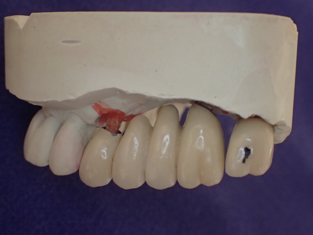 Heute erfolgte, sozusagen in Rekordzeit die Inkorpoartion einer implantatgestützten Brückenversorgung und einer implanbtatgestützten Krone.