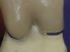 Der Zahn 36, also der hintere Brückenanker, der geschiebegeteilten Unterkieferbrückenversorgung war derart stark sekunärkariös zerstört, dass praktisch bis runter an den Knochen präpariert werden musste, um den Restzahnstumpf zu erhalten.