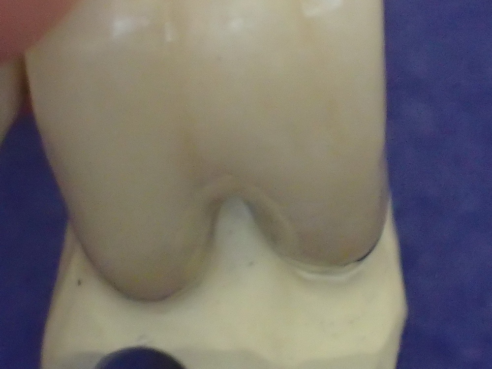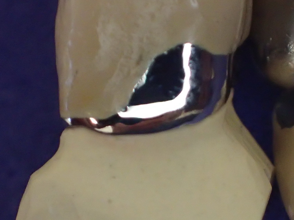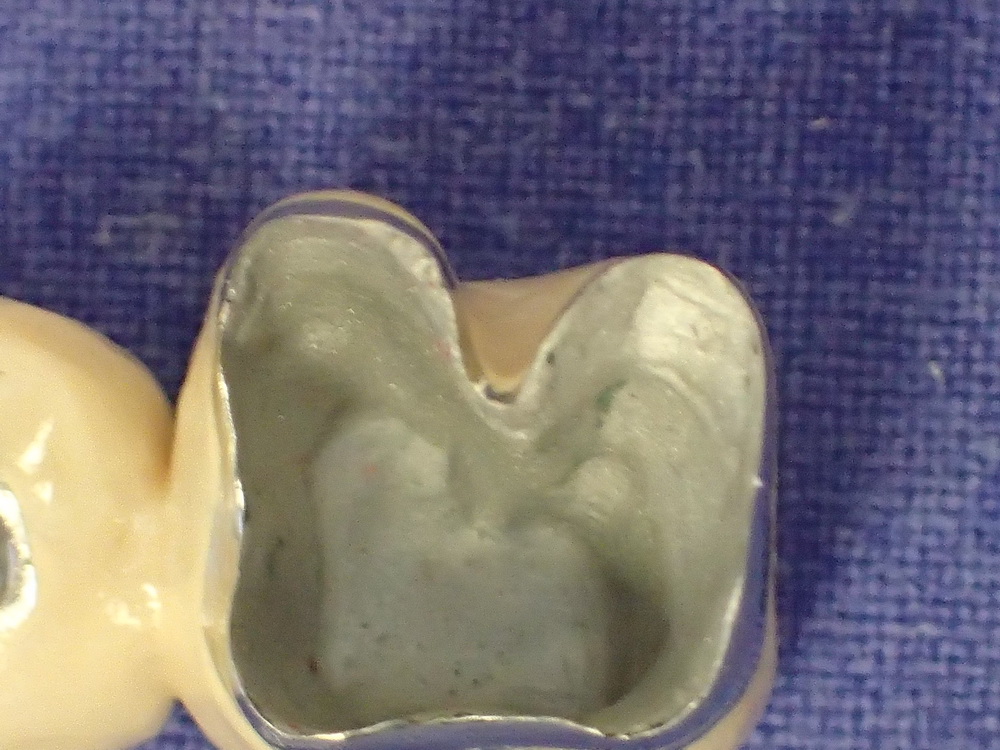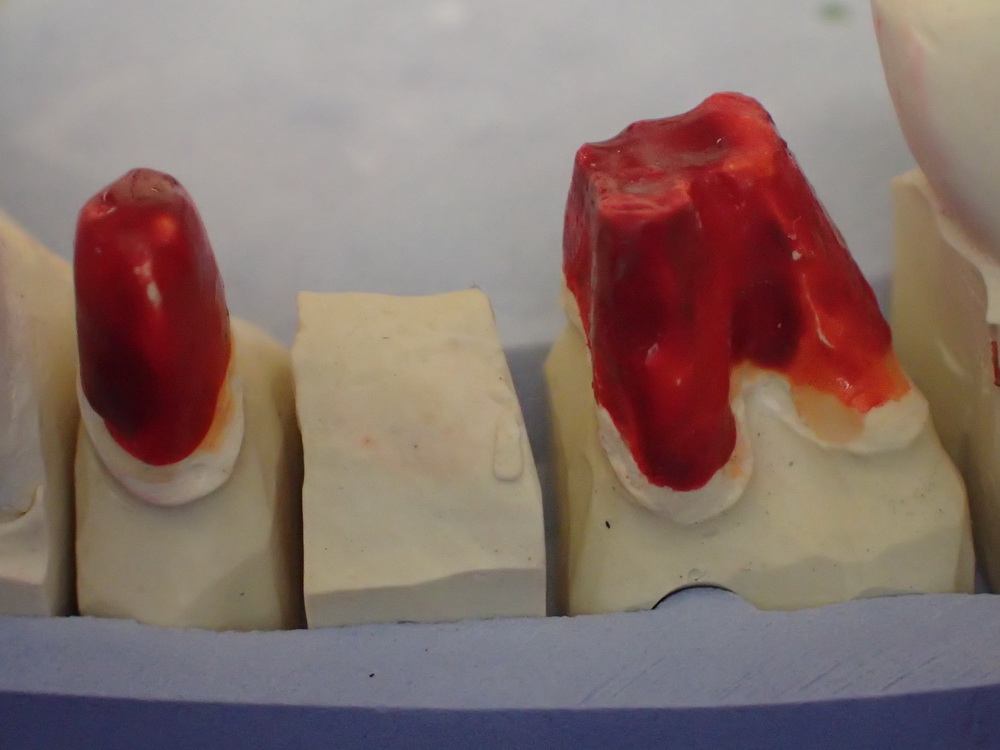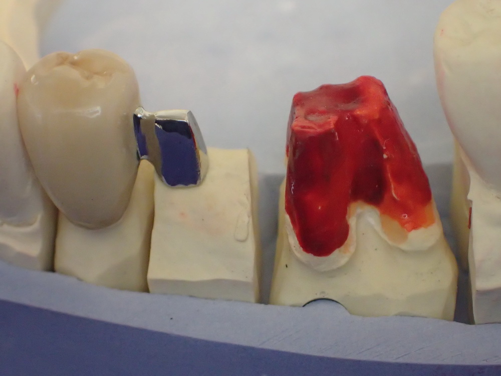 Zum Thema wurde das aber dann, als klar wurde, dass der Zahn so weit aus Knochen herausragt, Stichwort Parodontitis, dass es keinen gängigen Bohrer, genauer einen Präparierdiamanten gibt, mit dem man die Rückseite des Zahnes hätte sachgerecht präparieren können.