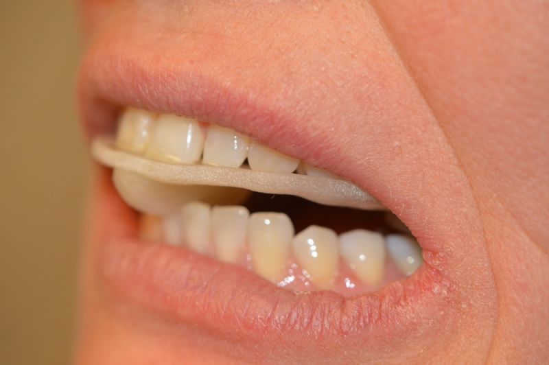 Nach ersten Umstellungsschwierigkeiten berichtet die Patientin nach ca. einer Stunde Tragezeit des Aufbissbshelfs über eine Reduzierung des Beschwerdelevels von "8" auf "7". Die Beschwerden im linken Schulterbereich würden etwas weniger, mehr könne die Patientin aber bisher nicht sagen.