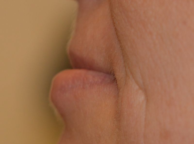 Sie schiebt reflektorisch den Unterkiefer nach vorne.
