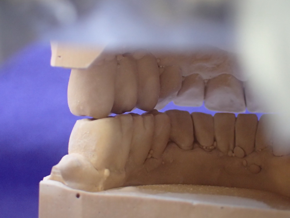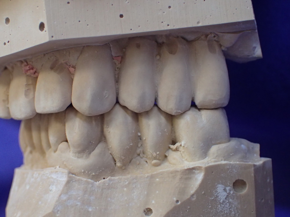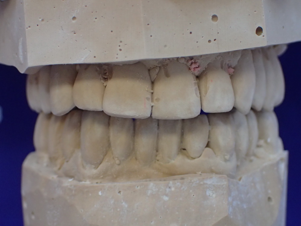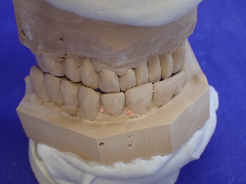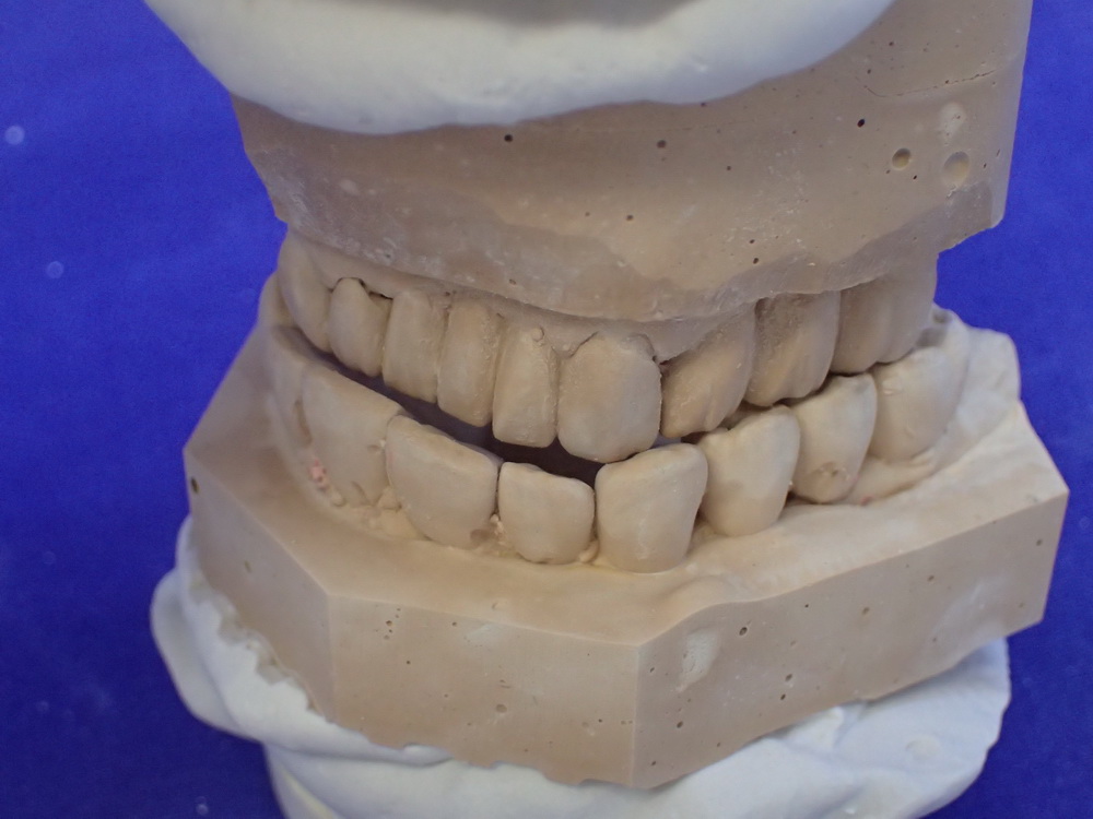 Die Modelle in habitueller Bisslage geben das Bild wieder, das der Zahnarzt sieht, wenn er zur Patientin sagt: Machen Sie bitte mal den Mund zu!