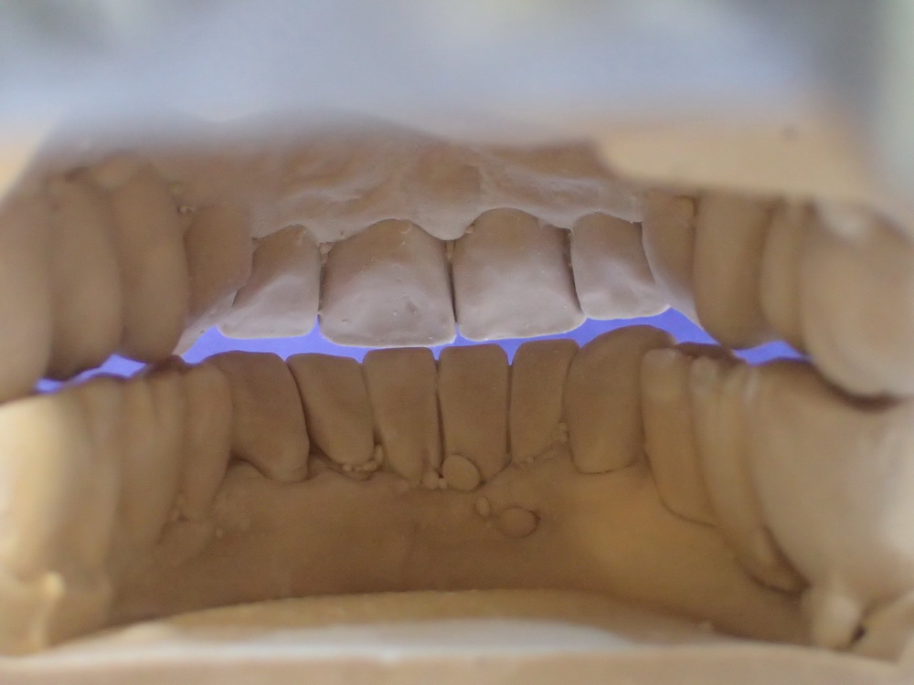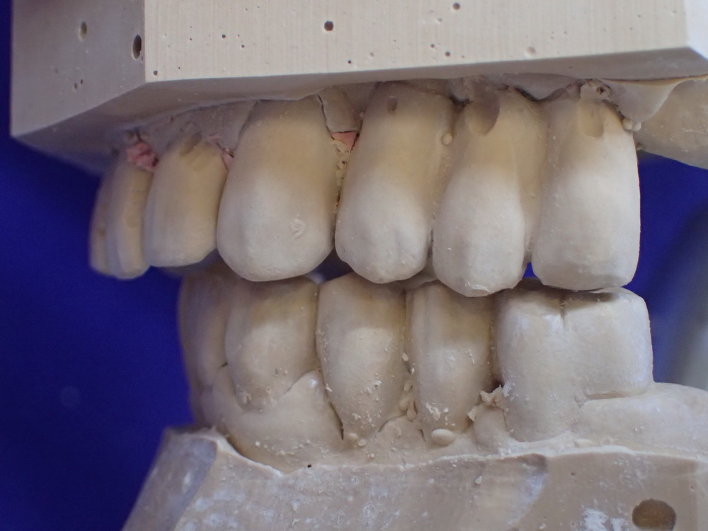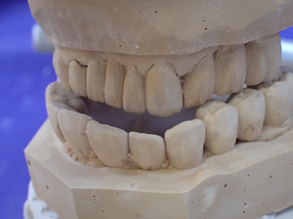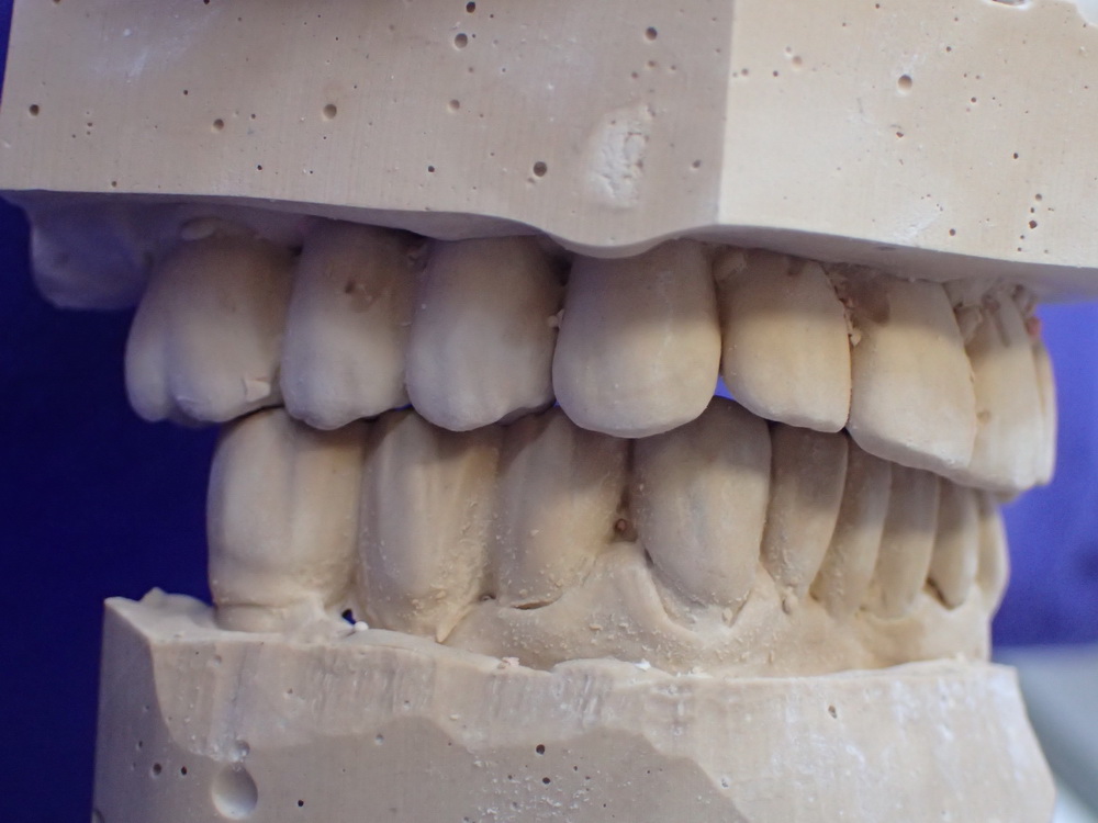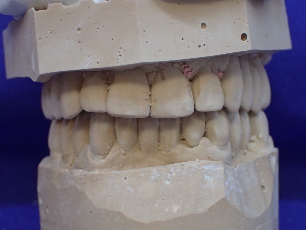 Die Modelle in habitueller Bisslage geben das Bild wieder, das der Zahnarzt sieht, wenn er zur Patientin sagt: Machen Sie bitte mal den Mund zu!