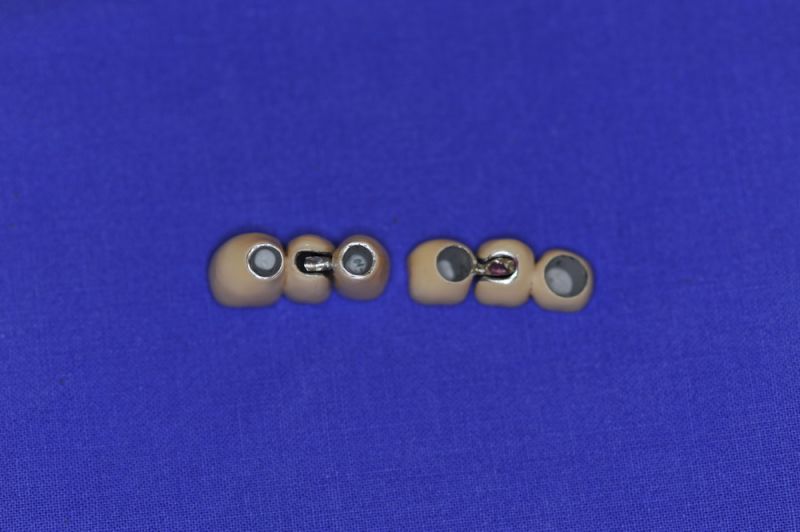 Im Unterkiefer wurden zum Ausgleich der elastischen Unterkieferverspannungen bei der Mundöffnung geteilte Geschiebebrücken eingegliedert.