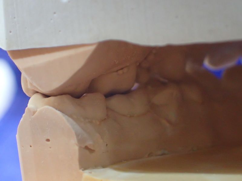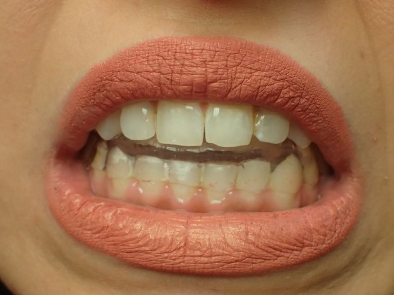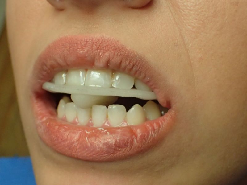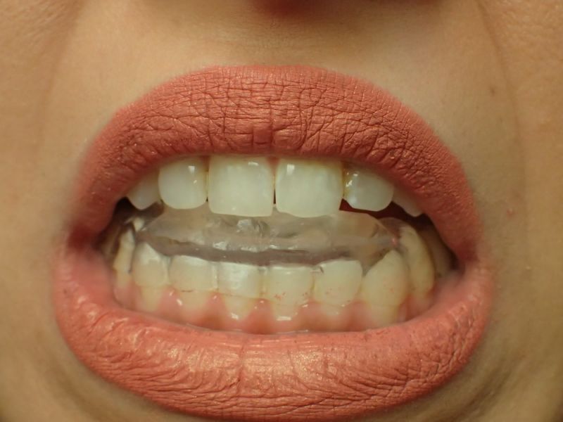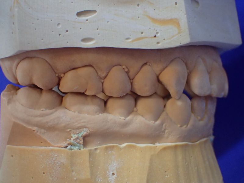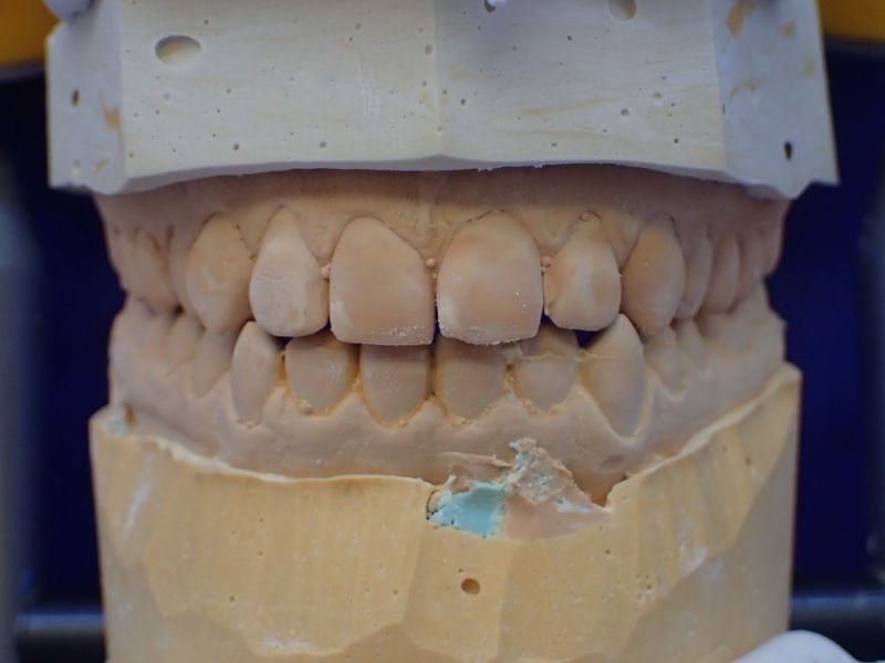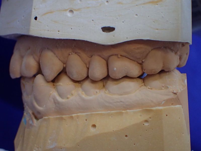 Es erfolgt bei der Patientin die Eingliederung eines adjustierten Aufbissbehelfs, ohne nennenswetre Korrekturen.