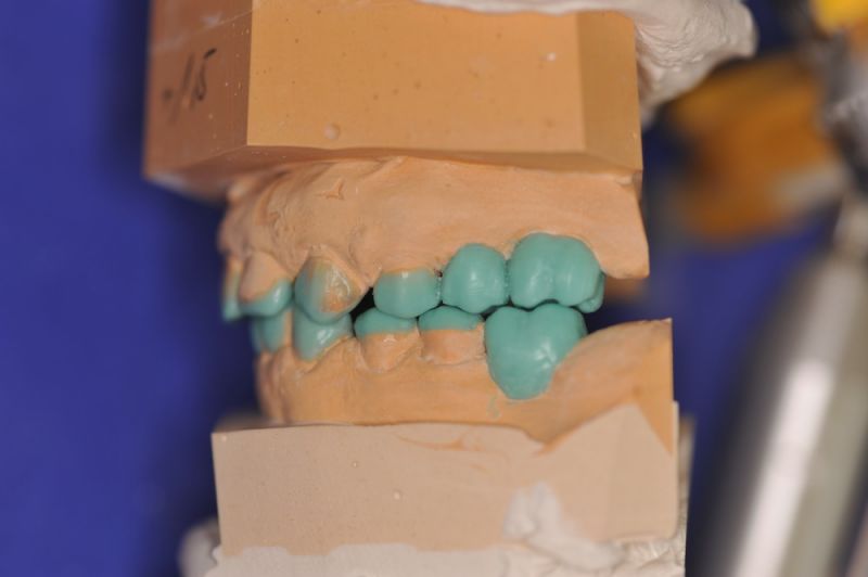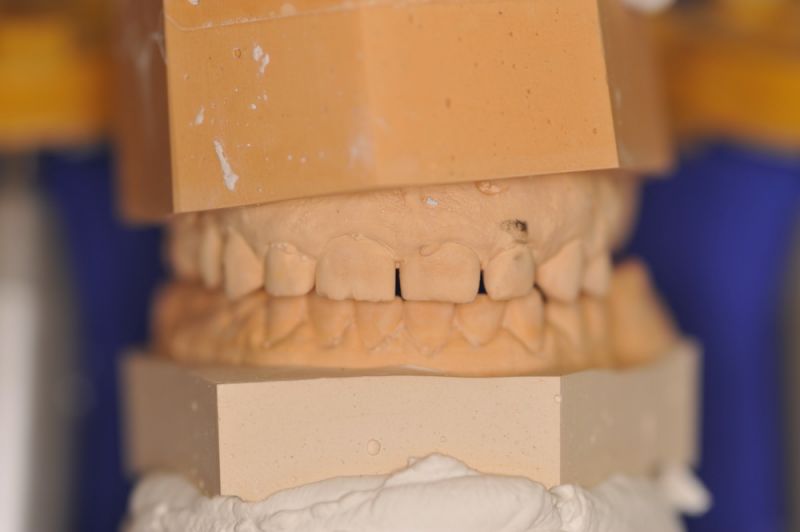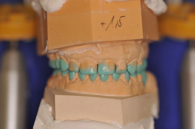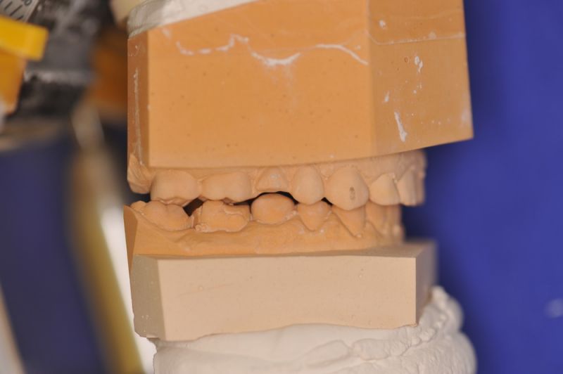 Für die Patientin, aus der Nähne von Karlsruhe, wurde nach entsprechender Diagnostik mit einem adjustierten Aufbissbehelf nunmehr auf neuen Modellen eine "Instrumentelle Okklusionsanalyse" durchgeführt.