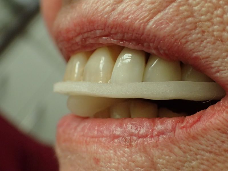Wie geplant erfolgte heute die Eingliederung eines adjustierten Aufbissbshelfs.