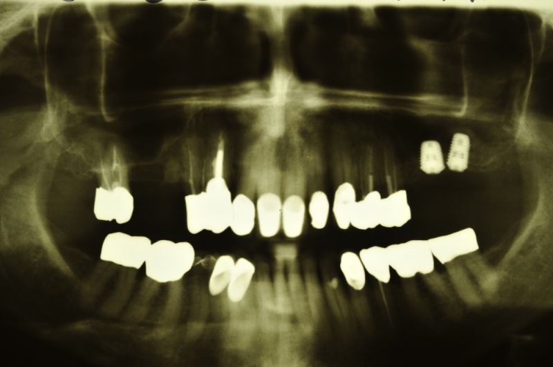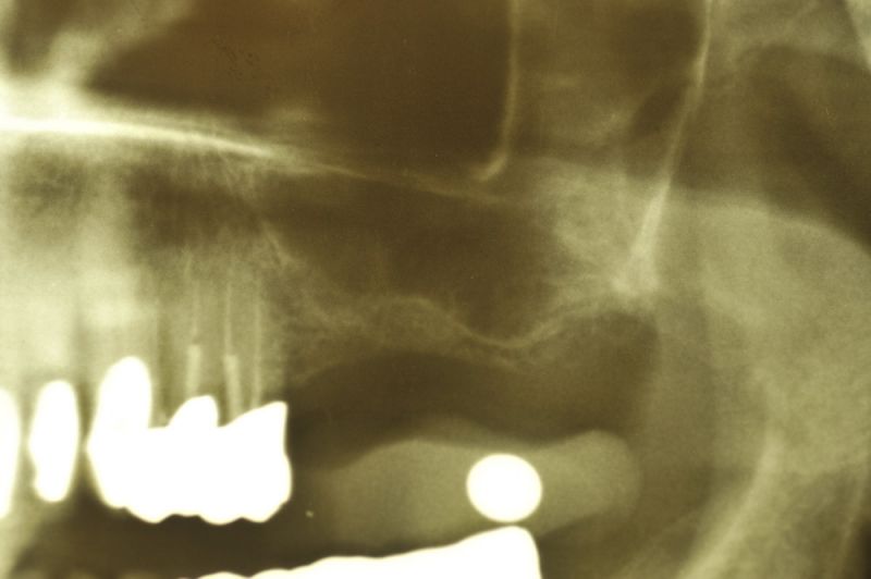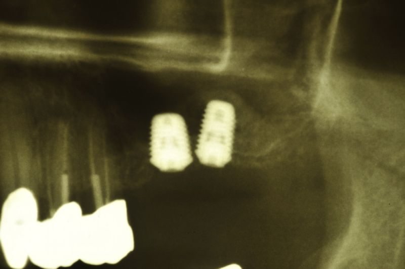 Genau das kann man dann auf dem Röntgenbild erkennen. So bildet sich innerhalb der Kieferhöhle, aber begrenzt durch die Kieferhöhlenmembran, neuer Knochen, der dann nachfolgend dem Implantat den knöchernen Halt gibt, den es unter späterer Belastung durch Kaudruck benötigt.