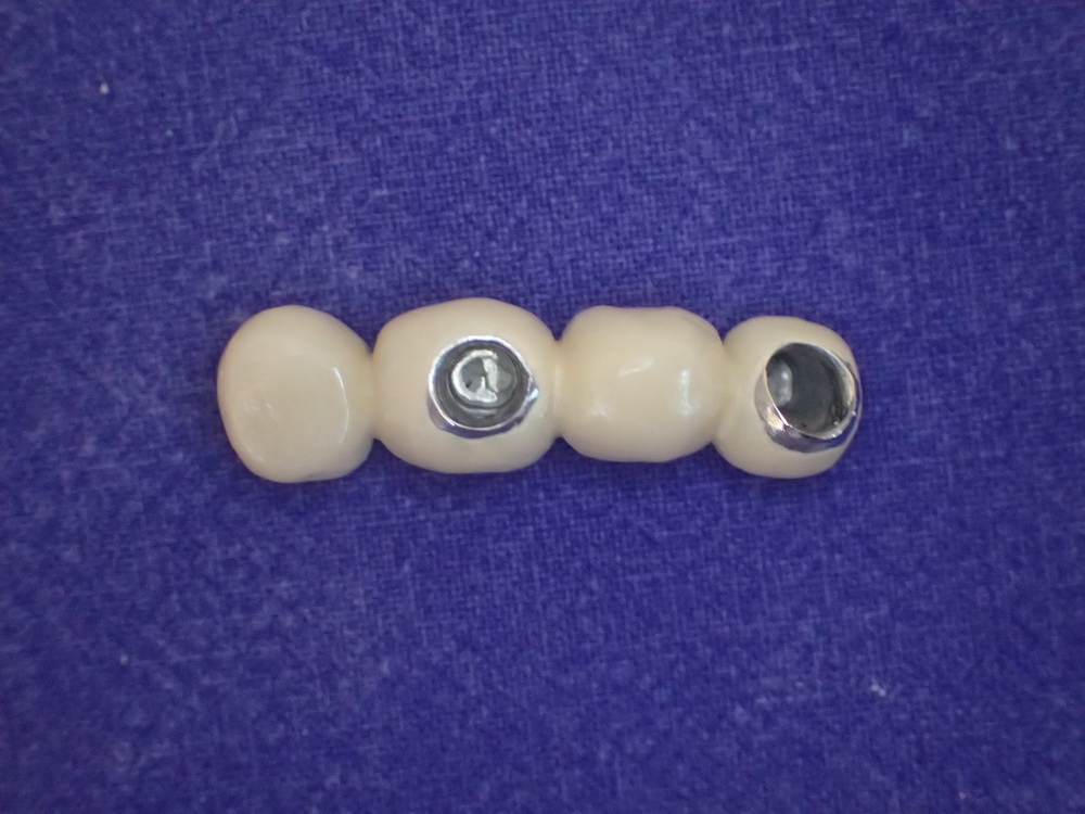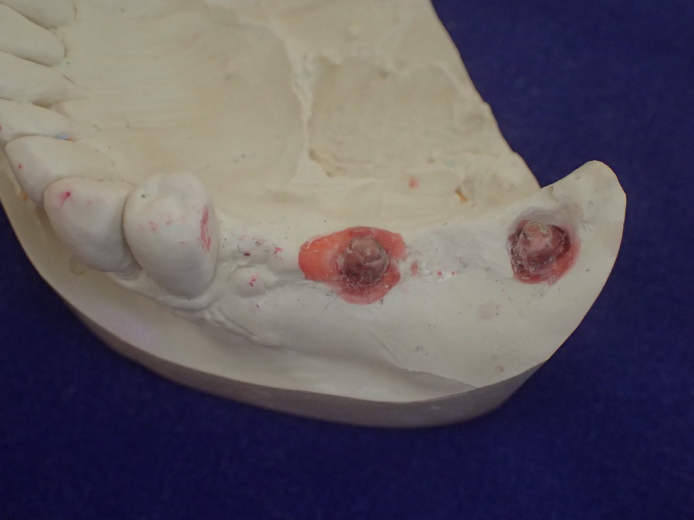 Nach der etwas überraschenden Entfernung des Zahnes 34 wurde heute, nach vorgenommener Gerüsteinprobe eine dauerprovisorische Freiendbrückenversorgung auf den Altimplantaten 35 und 37 eingegliedert.