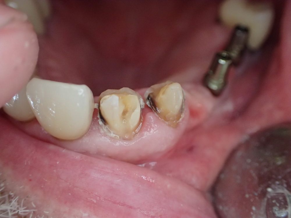 Die Kronen in der Front, die heute erneuert werden musste sind erst seit 7 Jahren im Mund des Patienten.