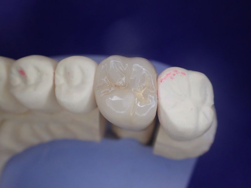 Wie geplant erfolgt eine Kronenzementierung an Zahn 26 und damit sind aller erkennbaren Probleme in der Mundhöhle des Patienten beseitigt.